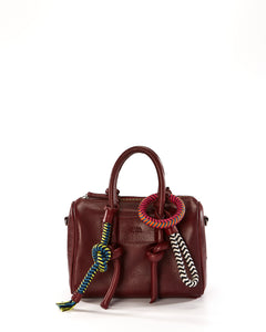 Small crossbody bag with top zipper, made in vegetable tanned cow leather, dyed with anilines. This bag comes with three (3) handbraided charms as seen in pictures!