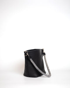 Detachable short handbraided handle in the Bataraza Mix (White/Black) to wear it on the shoulder or hand.