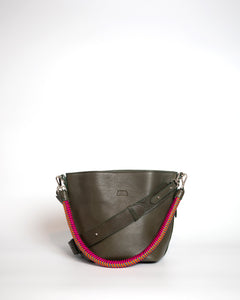 Detachable short handbraided handle in the Hypnotic Mix (Orange/Pink) to wear it on the shoulder or hand.
