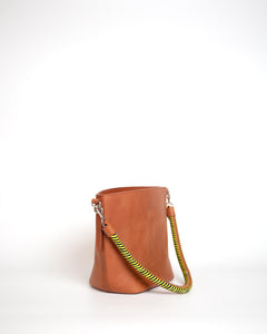 Bucket bag in vegetable tanned cow leather, dyed with anilines.