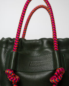 Adjustable short straps with knot in leather + a pair of handbraided handles to interchange, in the Hypnotic Mix (Pink/Orange)