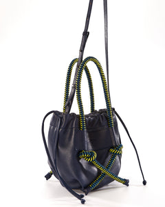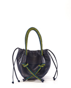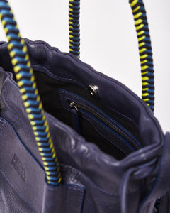 Adjustable short handles with knot in leather + a pair of handbraided handles in the Pacifico Mix (Blue/Yellow/Black)