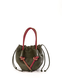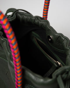 Adjustable short handles with knot in leather + a pair of handbraided handles to interchange, in the Hypnotic Mix (Pink/Orange)