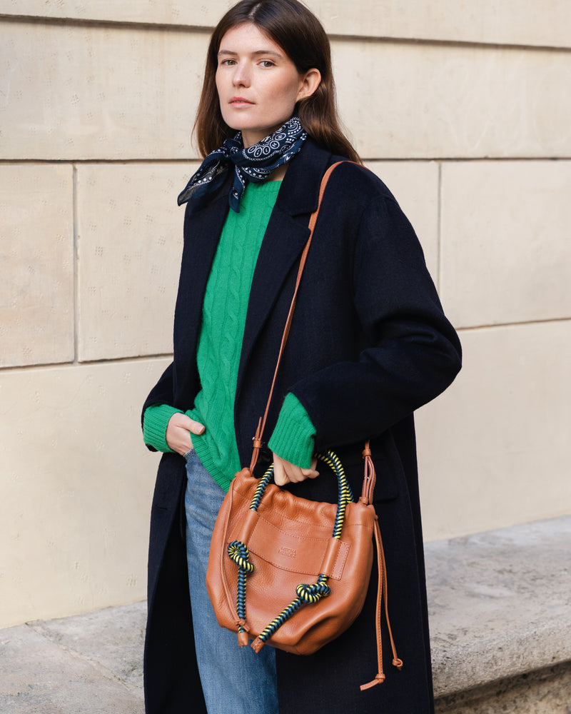 Crossbody bag in vegetable tanned cow leather, dyed with anilines.
