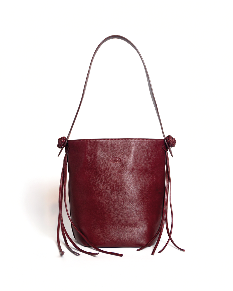 Bucket bag in vegetable tanned cow leather, dyed with anilines.